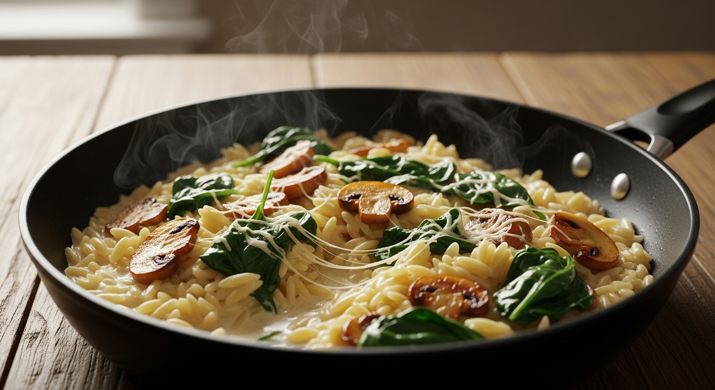 Quand les premiers frimas installent leur ballet sur les carreaux et que les soirs d’octobre invitent à la douceur, les plats réconfortants deviennent rois. Ce crémeux d’orzo, généreusement garni d’épinards frais et de champignons fondants, incarne à merveille l’esprit d’automne : simple, rapide et profondément gourmand. Le fromage frais glisse sa note enveloppante, tandis que le bouillon infuse chaque perle de pâte de saveurs profondes. En vingt minutes, la cuisine se transforme en cocon parfumé, prêt à réunir petits et grands autour d’un plat qui n’a rien d’ordinaire. À l’heure où la lumière décline, rien de tel qu’une recette qui promet une assiette crémeuse dans laquelle même les plus réticents aux épinards plongeront leur fourchette avec gourmandise…