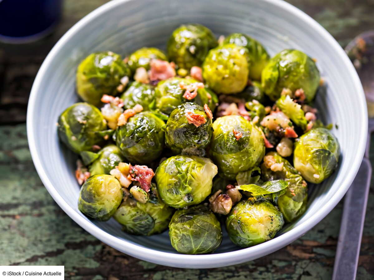 Préparez un gratin de choux de Bruxelles : après avoir précuit vos choux à l’eau, égouttez-les et disposez-les dans un plat à gratin. Ajoutez de la crème, du fromage râpé, des petits morceaux de jambon et passez le plat au four pendant 10 minutes à 210°.